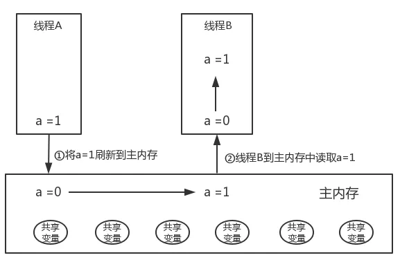 - 线程B到主内存中去读取线程A之前已更新过的共享变量。