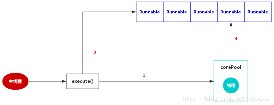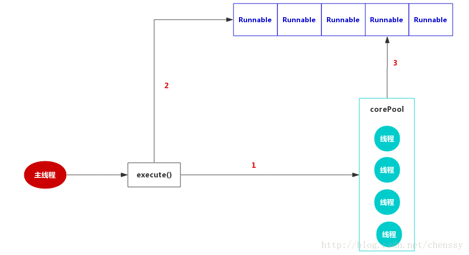 如果运行的线程等于或多于corePoolSize ,则将任务加入BlockingQueue。