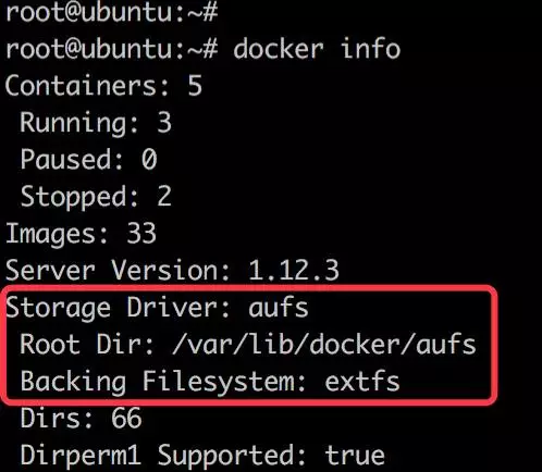 Ubuntu 用的 AUFS,底层文件系统是 extfs,各层数据存放在 /var/lib/docker/aufs。