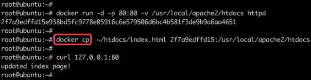 只需要向容器添加文件,不希望覆盖整个目录。在上面的例子中,我们将 html 文件加到 apache 中,同时也保留了容器原有的数据。