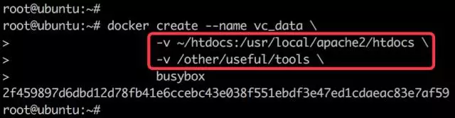 注意这里执行的是 docker create 命令,这是因为 volume container 的作用只是提供数据,它本身不需要处于运行状态。