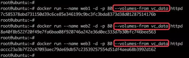 其他容器可以通过 --volumes-from 使用 vc_data 这个 volume container: