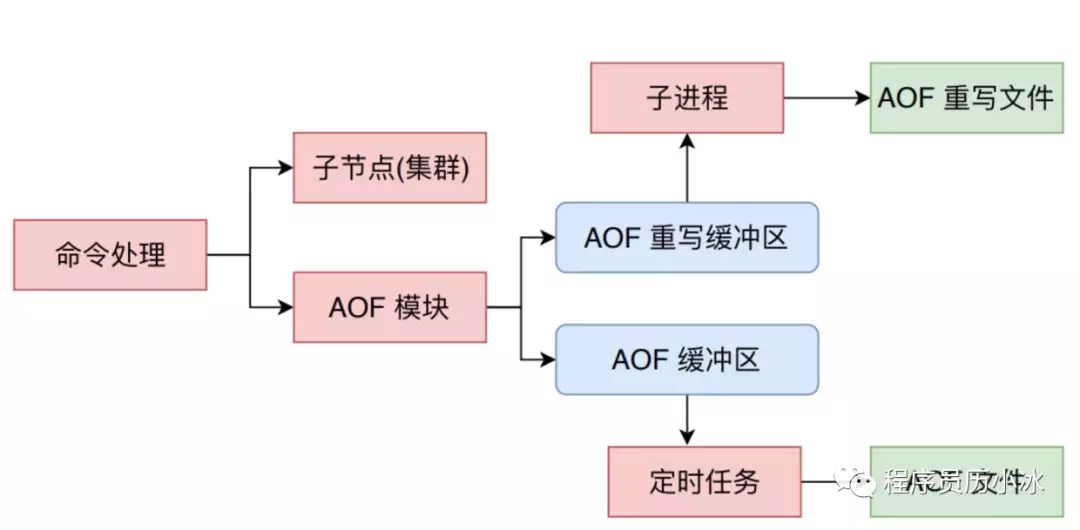 AOF 重写函数会进行大量的写入操作,调用该函数的线程将被长时间阻塞,所以 Redis 在子进程中执行 AOF 重写操作。