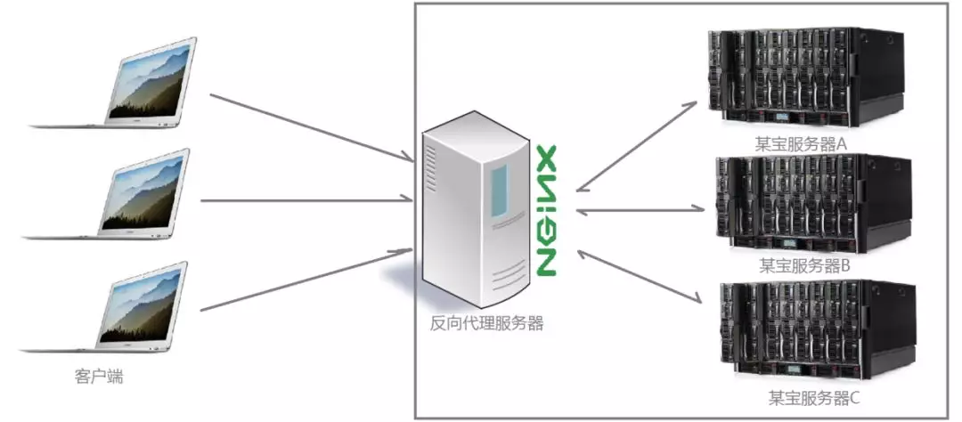 此时~请求的来源也就是客户端是明确的,但是请求具体由哪台服务器处理的并不明确了,Nginx扮演的就是一个反向代理角色。