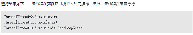 接口的加载过程与类加载过程稍有不同,针对接口需要做一些特殊说明:接口也有初始化过程,这点与类是一致的,上面的代码都是用静态语句块“static{}”来输出初始化信息的,而接口中不能使用“static{}”语句块,但编译器仍然会为接口生成“<clinit>()”类构造器[插图],用于初始化接口中所定义的成员变量。接口与类真正有所区别的是前面讲述的六种“有且仅有”需要触发初始化场景中的第三种:当一个类在初始化时,要求其父类全部都已经初始化过了,但是一个接口在初始化时,并不要求其父接口全部都完成了初始化,只有在真正使用到父接口的时候(如引用接口中定义的常量)才会初始化。