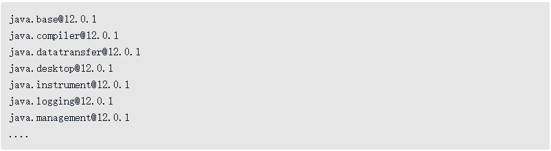 除了向后兼容性外,随着JDK 9模块化系统的引入,更值得关注的是它本身面临的模块间的管理和兼容性问题:如果同一个模块发行了多个不同的版本,那只能由开发者在编译打包时人工选择好正确版本的模块来保证依赖的正确性。Java模块化系统目前不支持在模块定义中加入版本号来管理和约束依赖,本身也不支持多版本号的概念和版本选择功能。前面这句话引来过很多的非议,但它确实是Oracle官方对模块化系统的明确的目标说明[插图]。我们不论是在Java命令、Java类库的API抑或是《Java虚拟机规范》定义的Class文件格式里都能轻易地找到证据,表明模块版本应是编译、加载、运行期间都可以使用的。譬如输入“java--list-modules”,会得到明确带着版本号的模块列表: