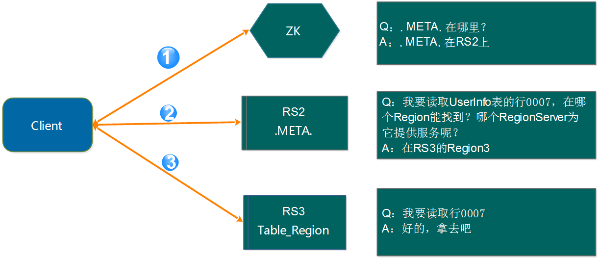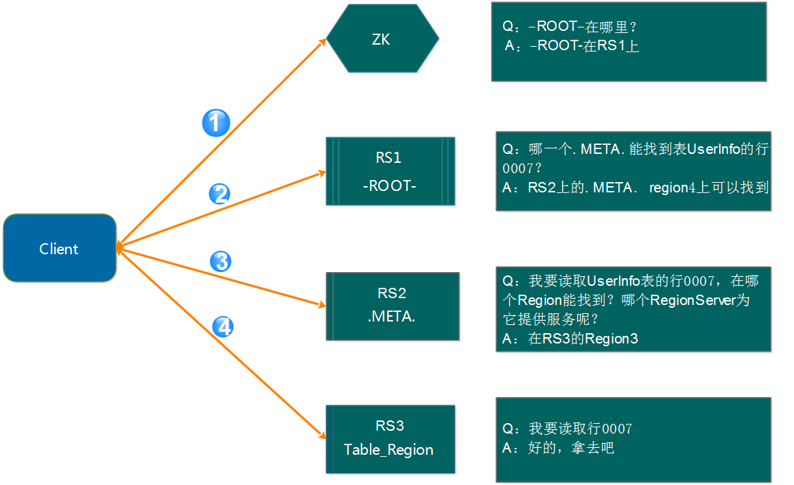 既然读写都在RegionServer上发生,我们前面有讲到,每个RegionSever为一定数量的region服务,那么client要对某一行数据做读写的时候如何能知道具体要去访问哪个RegionServer呢?那就是接下来我们要讨论的问题