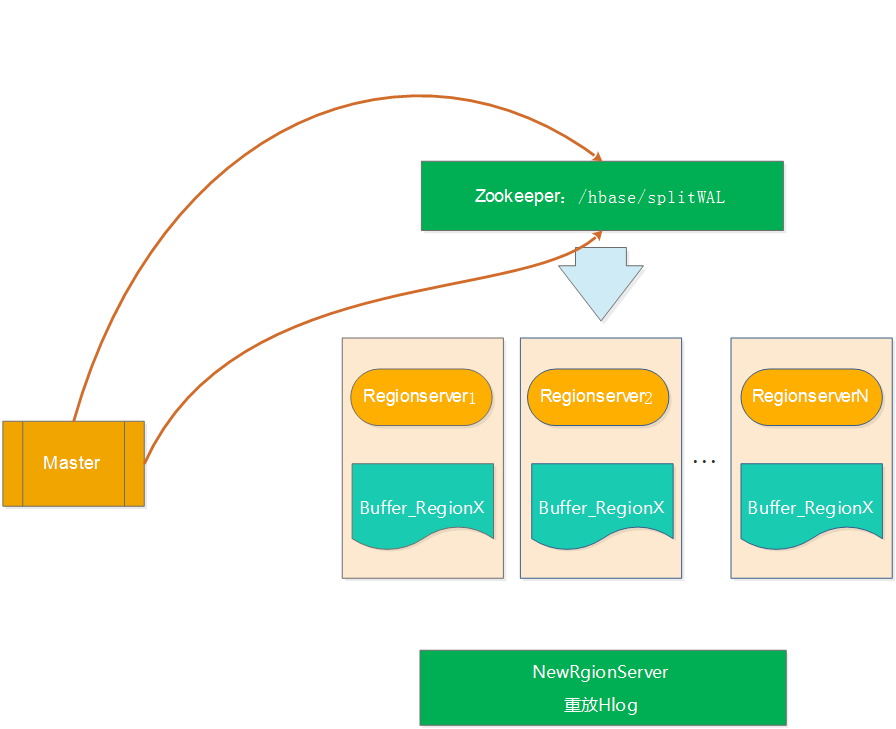 顾名思义,Distributed Log Splitting是LogSplitting的分布式实现,分布式就不是master一个人在干活了,而是充分使用各个RegionServer上的资源,利用多个RegionServer来并行切分Hlog,提高切分的效率。