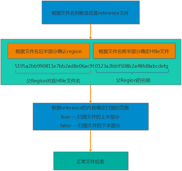 根据reference文件的内容来确定扫描的范围,reference的内容包含两部分,一部分是切分点splitkey,另一部分是boolean类型的变量(true或者false)。