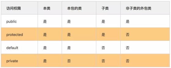 protected,对于子类是可访问的,不管是不是同包,对于外包的非子类是不可见的。