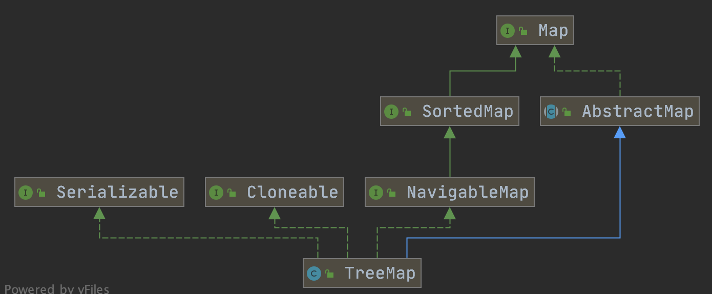 TreeMap 和HashMap 都继承自AbstractMap ,但是需要注意的是TreeMap它还实现了NavigableMap接口和SortedMap 接口。