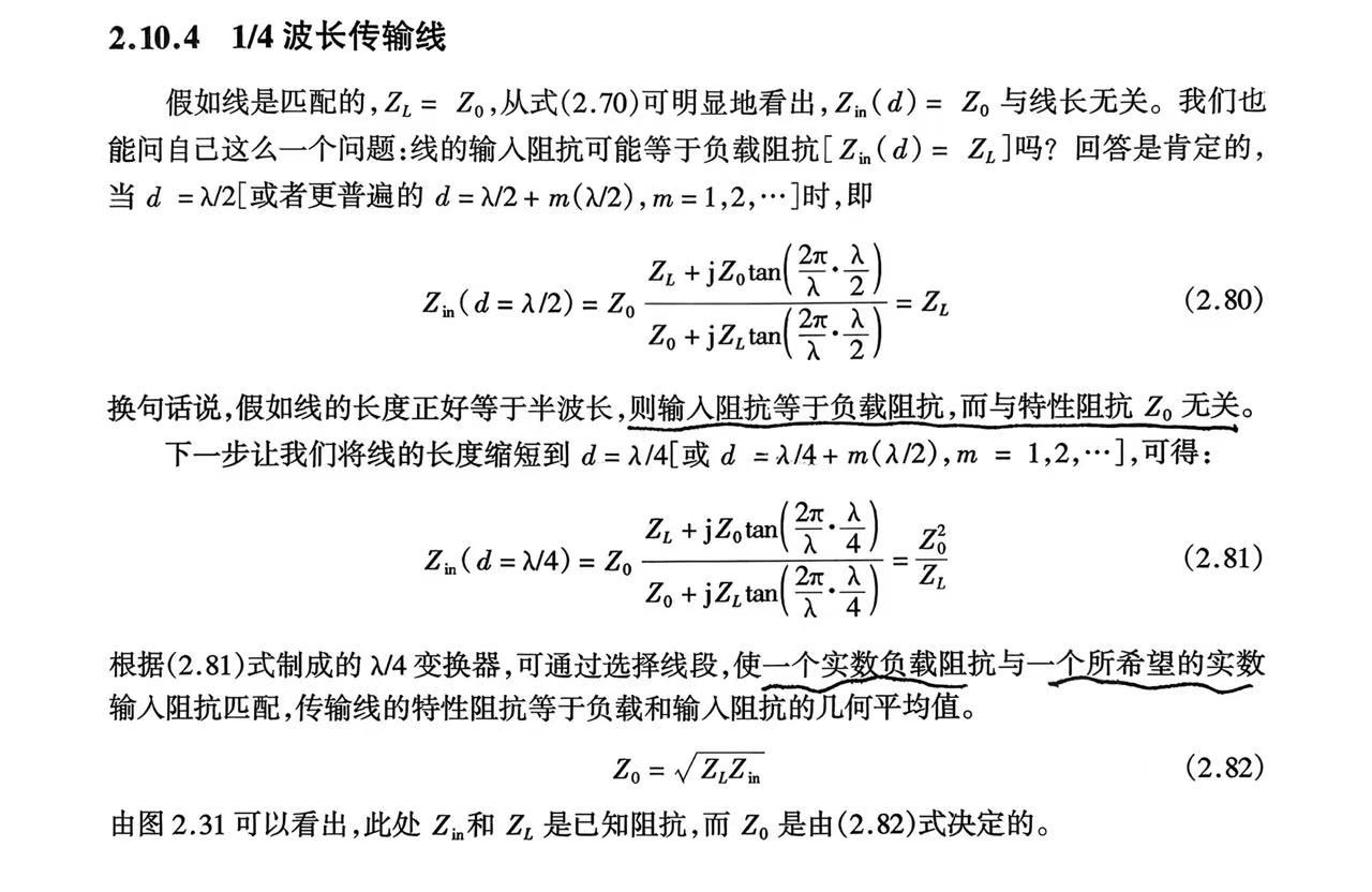 简单理解就是当微带线的长度为λ/4时,其阻抗由Zin和Zl决定,即通过λ/4变换器,可以实现实数负载阻抗和希望的输入阻抗的匹配。