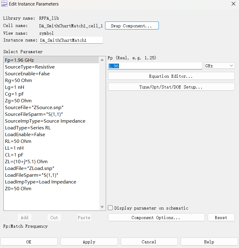 在工具中添加源阻抗和负载阻抗信息,设置完可以lock一下。同时别忘了上文所说1/4波长线只能对实数阻抗进行变换,所以第一步需要将Zl复阻抗转换为实数阻抗。