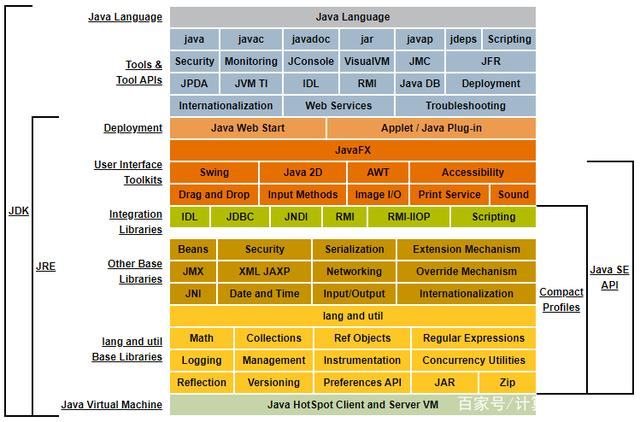 JDK(Java Development Kit Java开发工具包):JDK是提供给Java开发人员使用的,其中包含了java的开发工具,也包括了JRE。所以安装了JDK,就不用在单独安装JRE了。其中的开发工具包括编译工具(javac.exe) 打包工具(jar.exe)等。