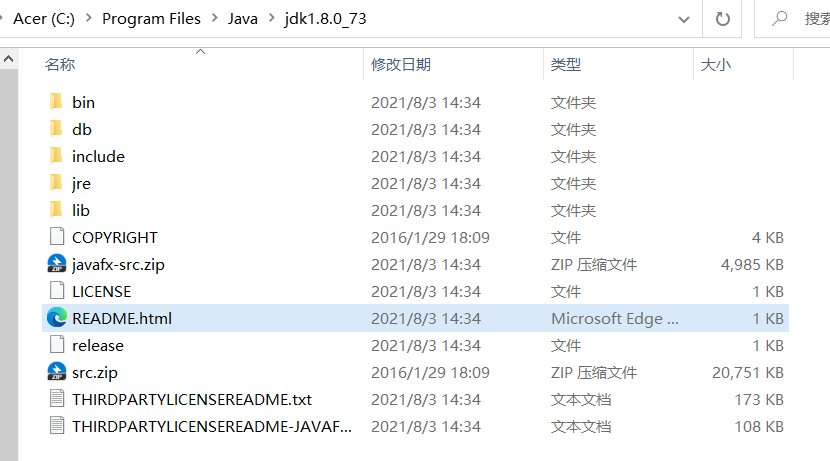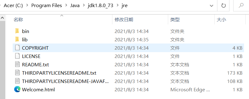 bin:有 java.exe 但没有 javac.exe。也就是无法编译 Java 程序,但可以运行 Java 程序,可以把这个bin目录理解成JVM。