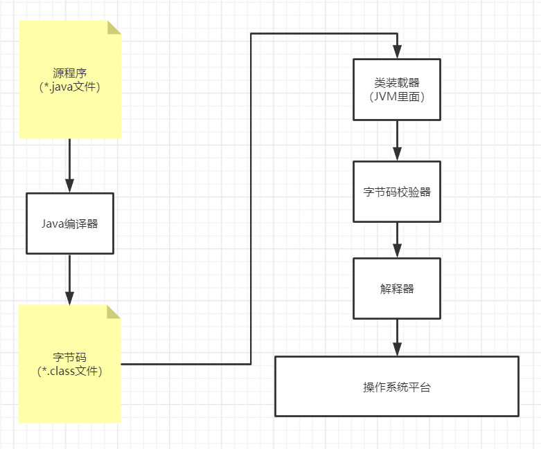 接下来了解一下Java运行流程,如图所示。(两张图是一个意思,那个看着舒服看那个)