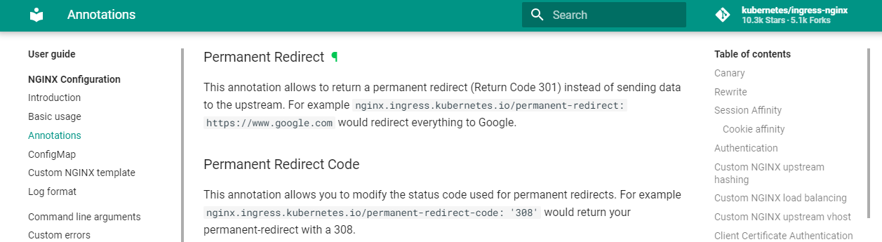 ~~~ https://kubernetes.github.io/ingress-nginx/user-guide/nginx-configuration/annotations/#permanent-redirect