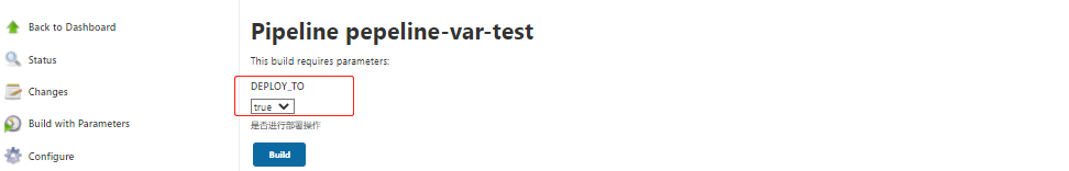 ~~~ General——>This project is parameterized——>StringParameter——>Name: DEPLOY_TYPE