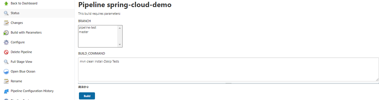 ~~~ ——>Default Value:mvn clean package-Dskip Tests——>Description:编译命令——>END