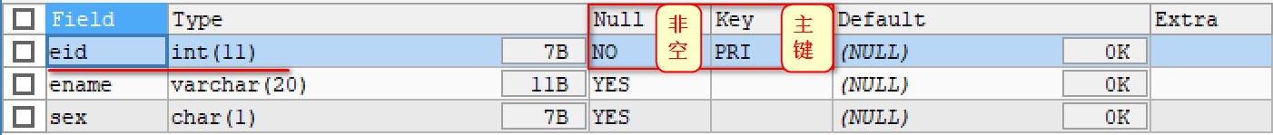 PRIMARY KEY(eid) -- 指定eid为主键