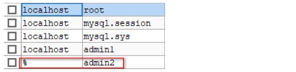 ### ---  % 表示 用户可以在任意电脑登录 mysql服务器.