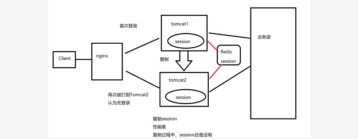 ~~~ 只能在各个tomcat之间,通过网络和Io进行session的复制,极大的影响了系统的性能。