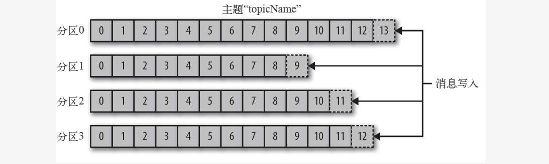 ~~~ 主题可以被分为若干分区,一个主题通过分区分布于Kafka集群中,提供了横向扩展的能力。