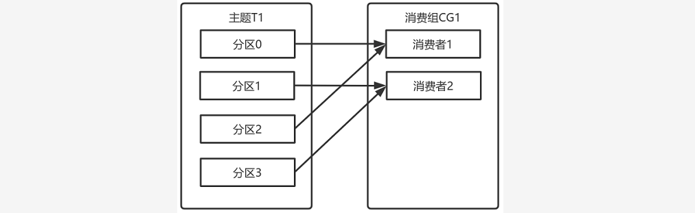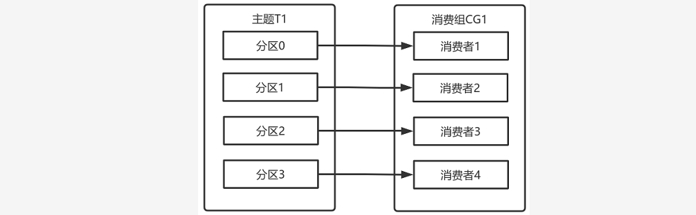 二、如果消费组有四个消费者,则每个消费者可以分配到一个分区。
