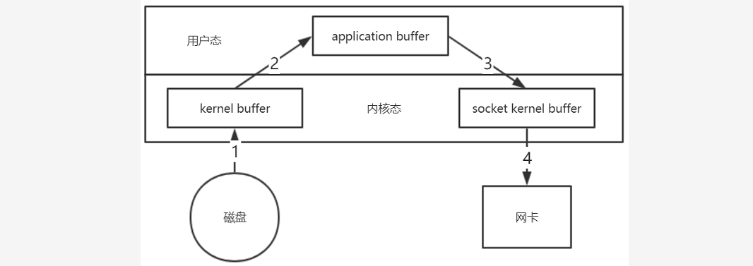 ~~~ 传统方式实现:先读取、再发送,实际经过1~4四次copy。