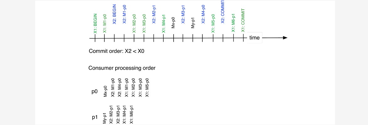 ~~~     # 在上图中,分区p0和p1接收事务X1和X2的消息,以及非事务性消息。