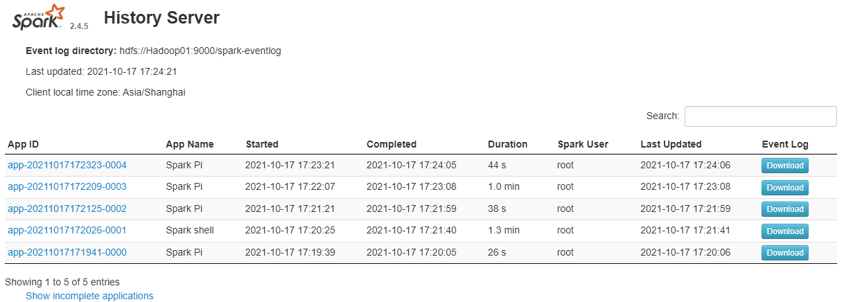 export SPARK_HISTORY_OPTS="-Dspark.history.ui.port=18080 -Dspark.history.retainedApplications=50 -Dspark.history.fs.logDirectory=hdfs://Hadoop01:9000/spark-eventlog"