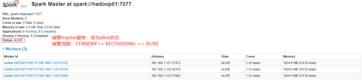 ~~~ # 杀到Hadoop02上 Master 进程,再观察Hadoop01上 Master 状态,