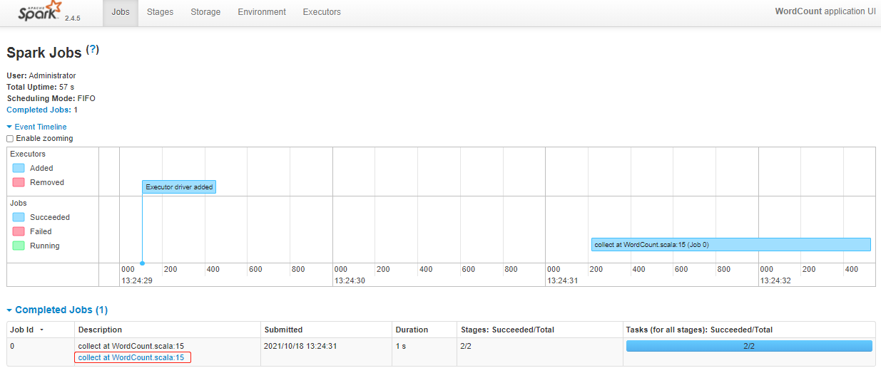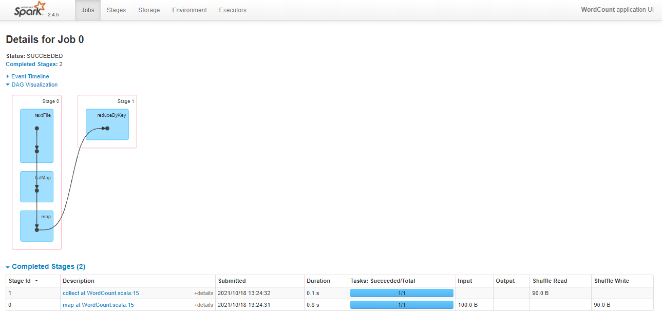 INFO SparkContext: Created broadcast 0 from textFile at WordCount.scala:12
