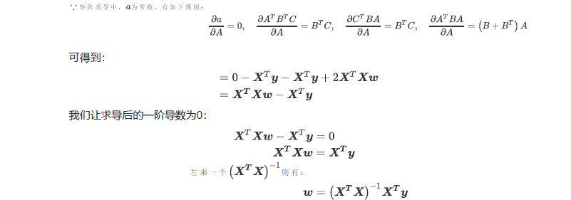 ~~~ 求解出这个参数向量,我们就解出了我们的Xw ,也就能够计算出我们的预测值y了。