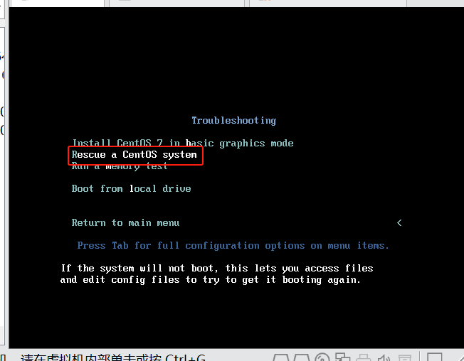 # 进入排错界面,选择第二个,拯救centos系统