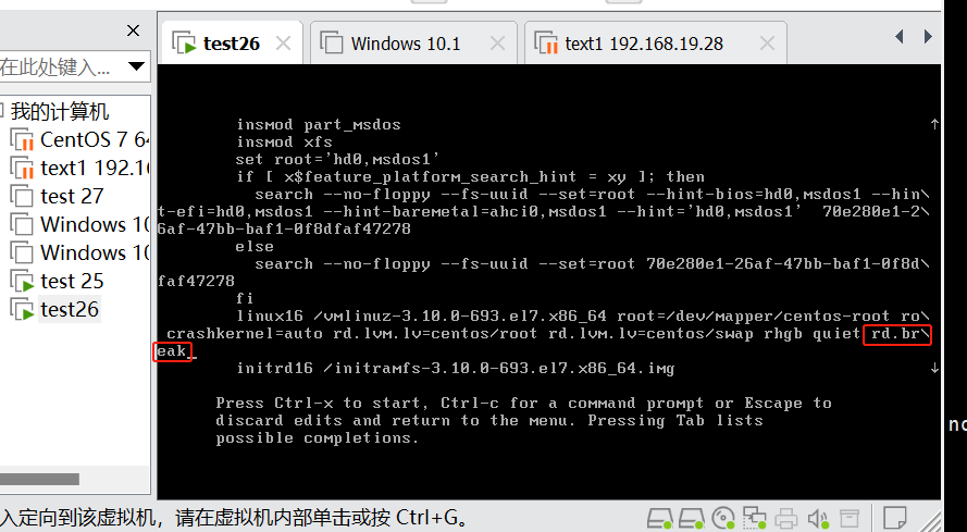 #在这行的末尾输入 rd.break
