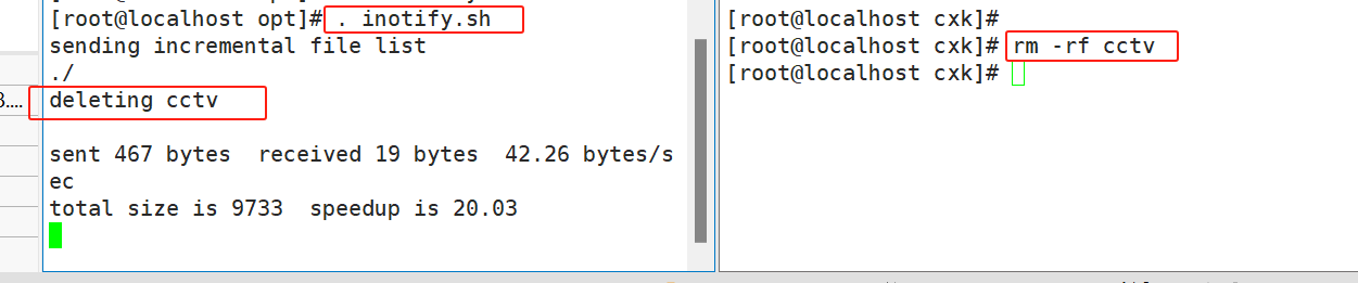 #在执行脚本的客户端中检测的目录,删除一个文件,脚本会显示,且同步的服务端里的cctv也会被删。