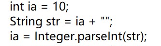 还有就是string类型与基本数据类型的准换,基本数据类型转换为string型时只需要在基本数据类型后边加 "" 即可,而string转换为基本数据类型时则需要通过基本类型的包装类调用parseXX,如下图: