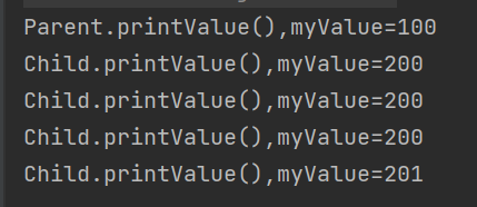 System.out.println("Child.printValue(),myValue="+myValue);