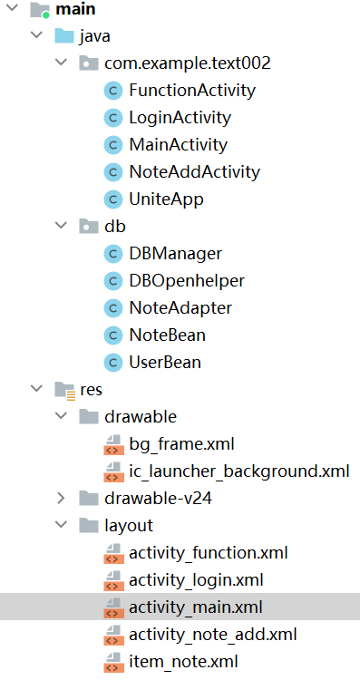 放一下目录结构,大体会用到这些——(有对应activity.xxx.xml的,创建的时候要创建activity,不要单独创建java文件)