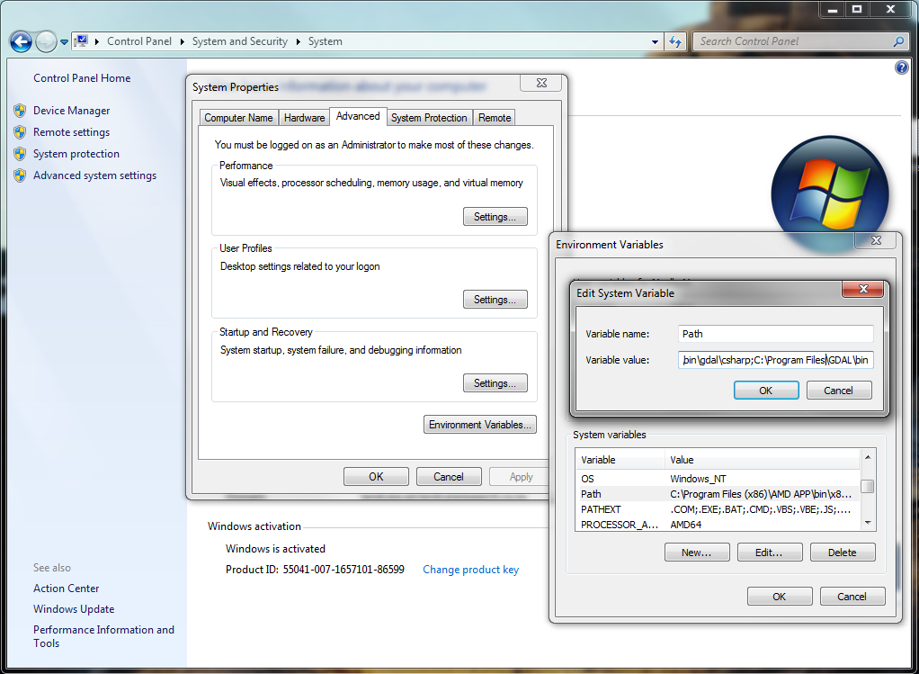 - Include both the path to C:\Program Files\GDAL\bin\gdal\csharp as well as C:\Program Files\GDAL\bin in your PATH system variable.