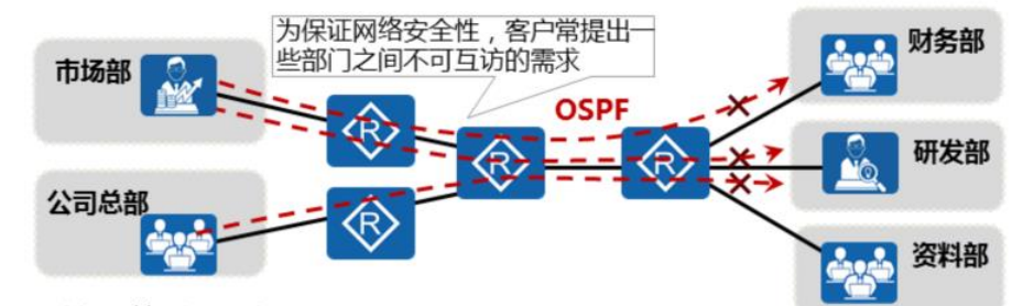 在企业网络的通信设备中,常面临一些非法流量的访问的安全性及流量路径不优等问题,故为保证数据访问的安全性、提高带宽利用率,就需要对网络中的流量进行控制,如网络可达性、调整网络流量路径的等。