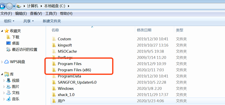 应用程序文件夹,一般软件默认都安装在这里,也有系统自带的应用程序。在Windows 7系统中,64位用户会多出一个Program Files(X86)文件夹,这是系统中32位软件的安装目录