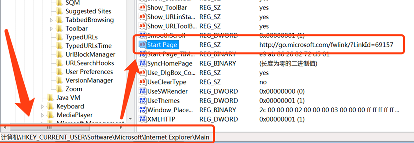 HKEY_CURRENT_USER\Software\Microsoft\Internet Explorer\Main Start Page
