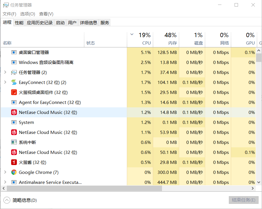 Windows任务管理器提供了有关计算机性能的信息,并显示了计算机上所运行的程序和进程的详细信息。任务管理器-进程界面可以看到正在运行的应用程序。可以手动结束任务、新建任务;在进程栏目,可以看到后台运行的进程。