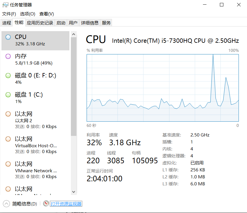 当虚拟机出现cpu、内存异常飙高时,可以通过任务管理器查看进程的资源利用率。病毒喜欢伪装成svchost.exe、explorer.exe、rundll32.exe等系统进程。当发现这些系统进程cpu、内存资源占用异常的时候,建议通过杀毒软件查杀。