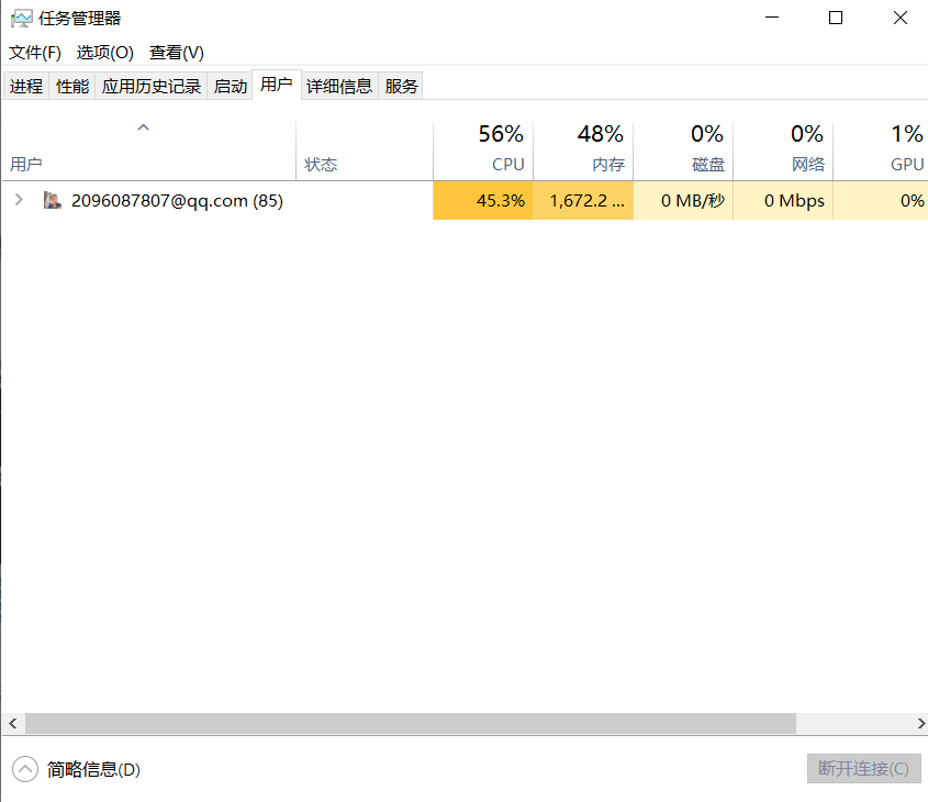 在性能栏目,可以看到详细的windows系统资源占用情况;用户栏目可以看到当前运行的用户名