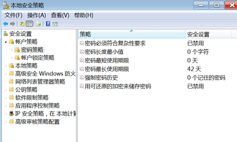 例:更改windows本地密码策略;重新登录windows用户后生效。