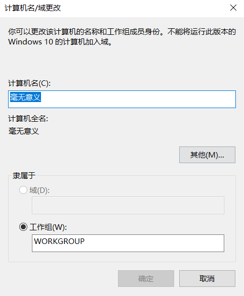 - 在弹出的“计算机名修改”对话框,输入对应的名称。