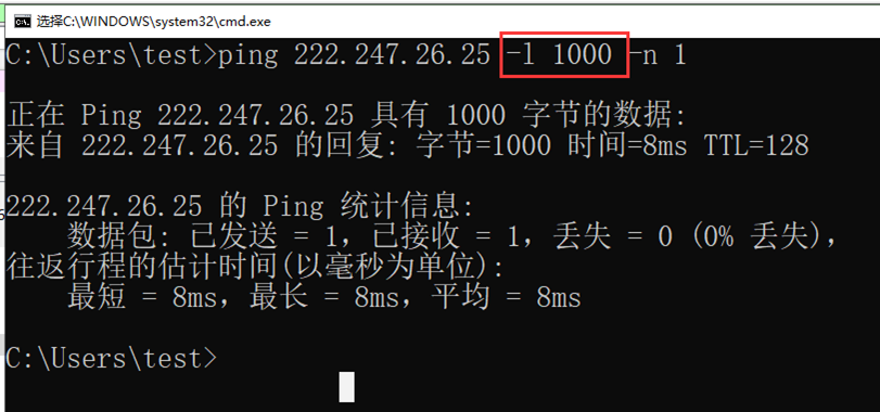 指定发送的回显请求消息中“数据”字段的长度(以字节为单位)。 默认值为32。最大大小为65,527。